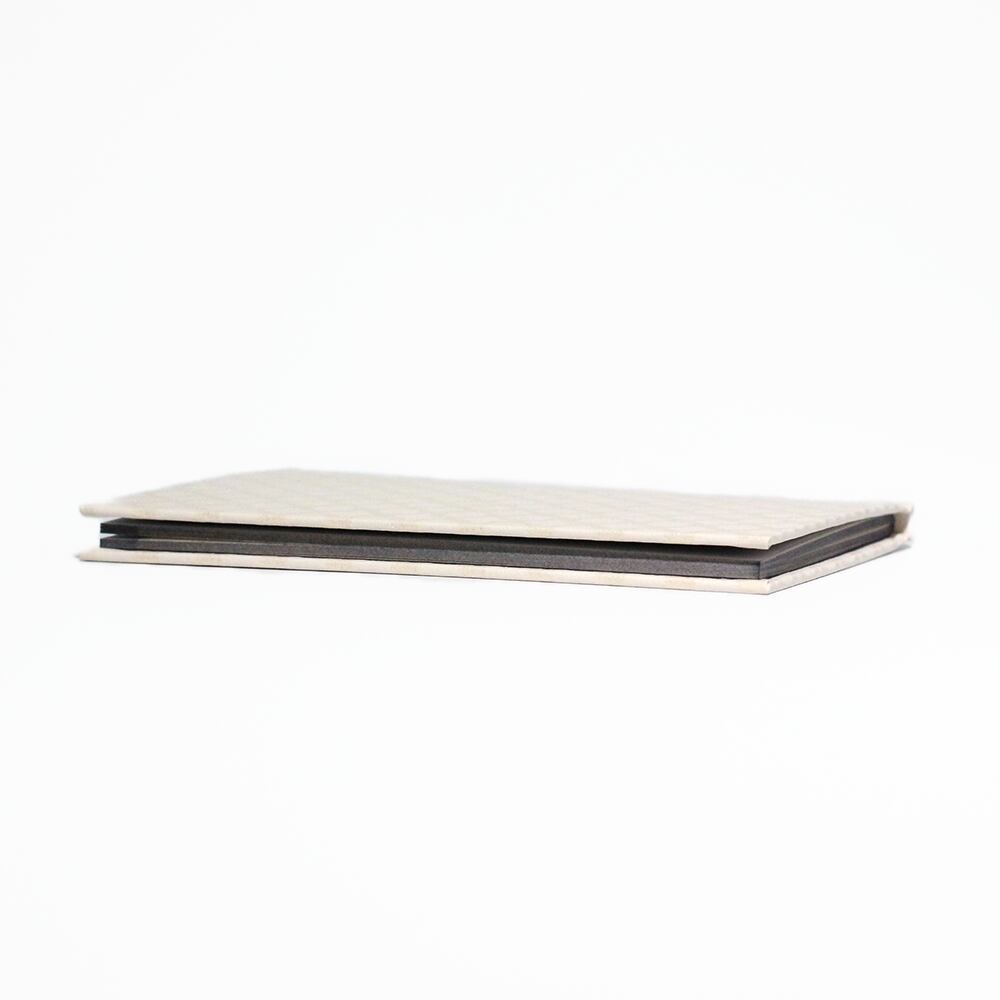 ノートの断面(小口)を上品なグレーに染め、シンプルながらも印象に残る佇まいに仕上げました。