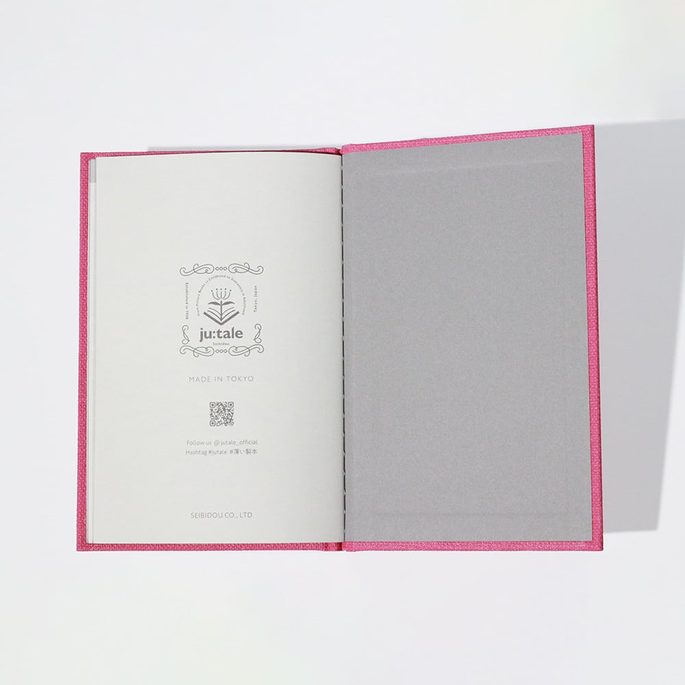 絵本製本を得意とする製本会社が作るブランドju:tale(ジュテール)が作るノートは、絵本製本と同じ、表紙を360度開いても、振り回してもちぎれない耐久性に優れた製本方法です。