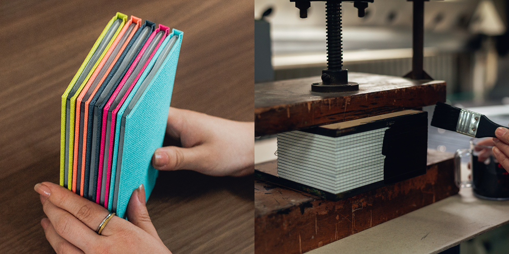 絵本製本を得意とする製本会社が作るブランドju:tale(ジュテール)が作るノートは、絵本製本と同じ、表紙を360度開いても、振り回してもちぎれない耐久性に優れた製本方法です。