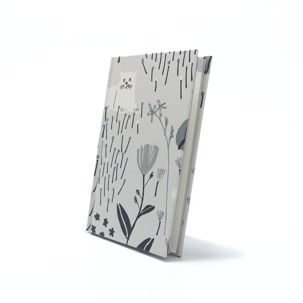ノートの断面(小口)を上品なグレーに染め、シンプルながらも印象に残る佇まいに仕上げました。