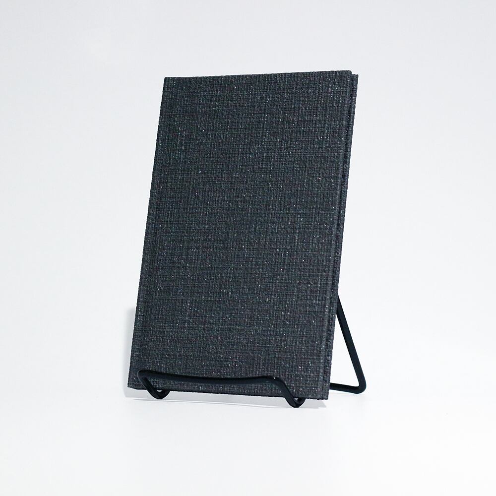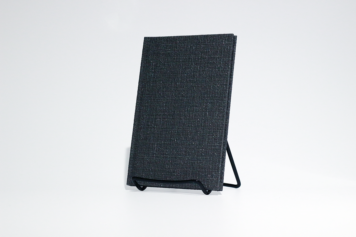 少しの違いで印象が変わるノートの側面は、墨で黒く染め上げて、重厚感と高級感をプラスしました。