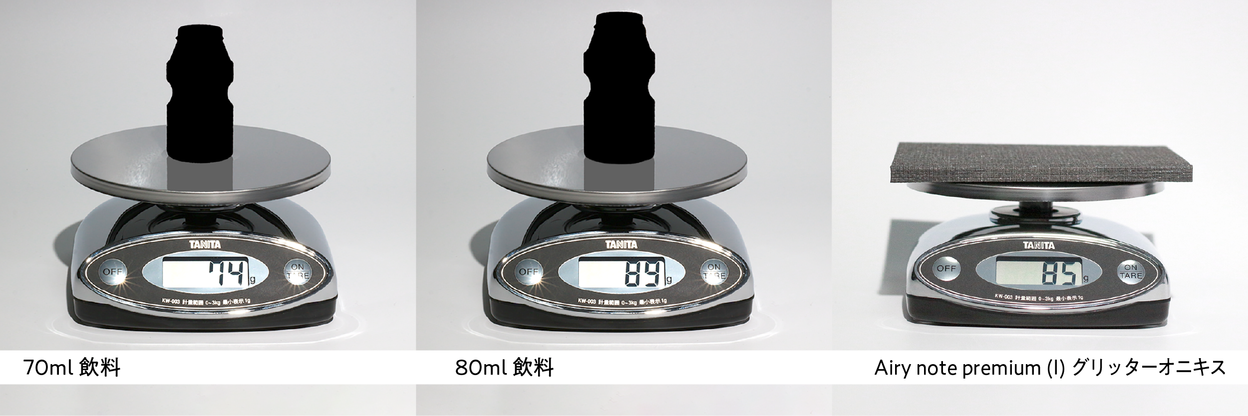 この軽さを伝えるために、誰もが知っているドリンクで重さの比較をしました。